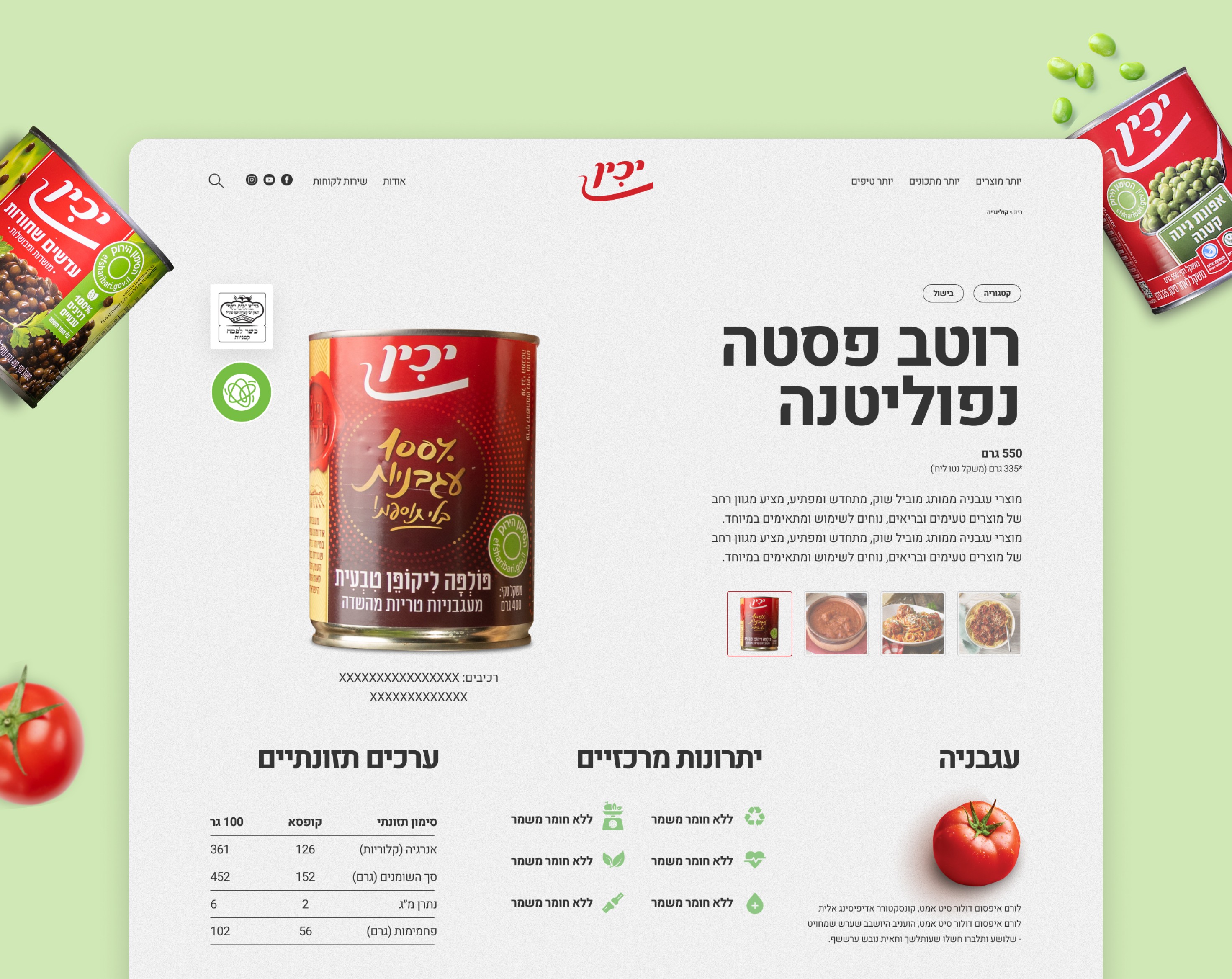 Yachin is Israel's largest and most recognized producer of canned tomatoes vegetables and legumes with over 90 years of heritage. Following a visual brand refresh the company needed a new website that would reflect the quality freshness and pride behind their products. My task was to create a vibrant appetizing and modern website that would serve as a true digital showcase of the brand.
