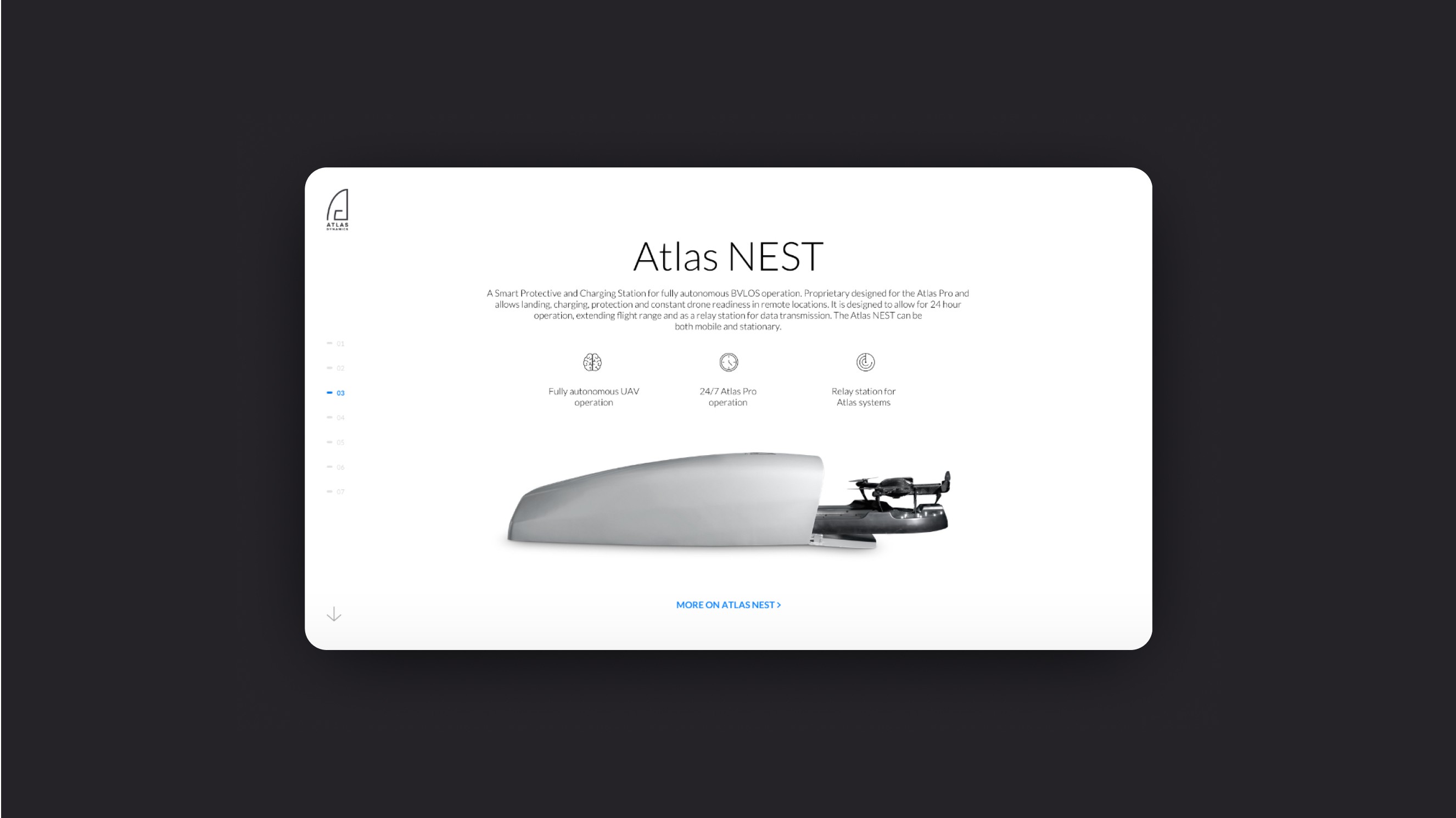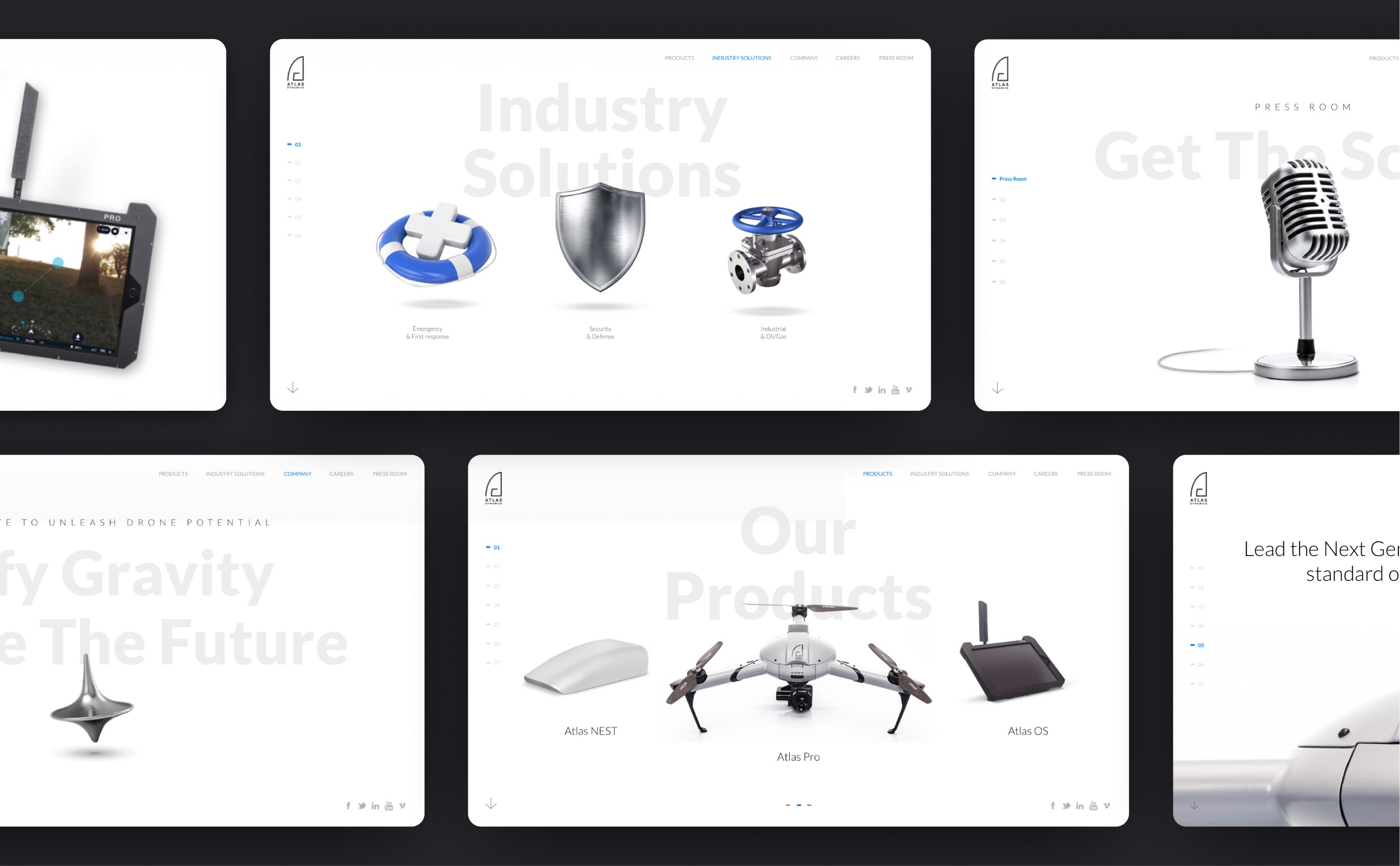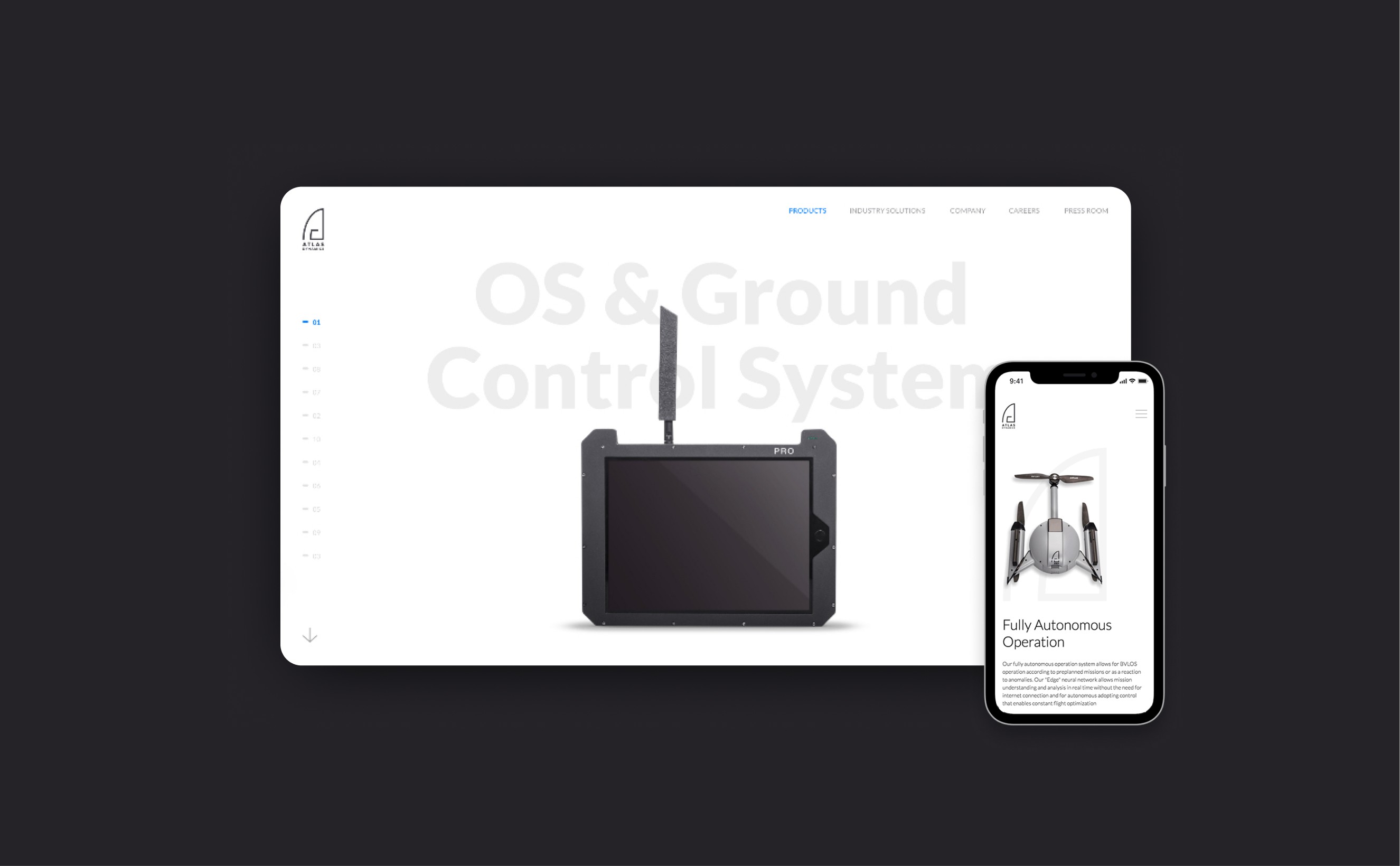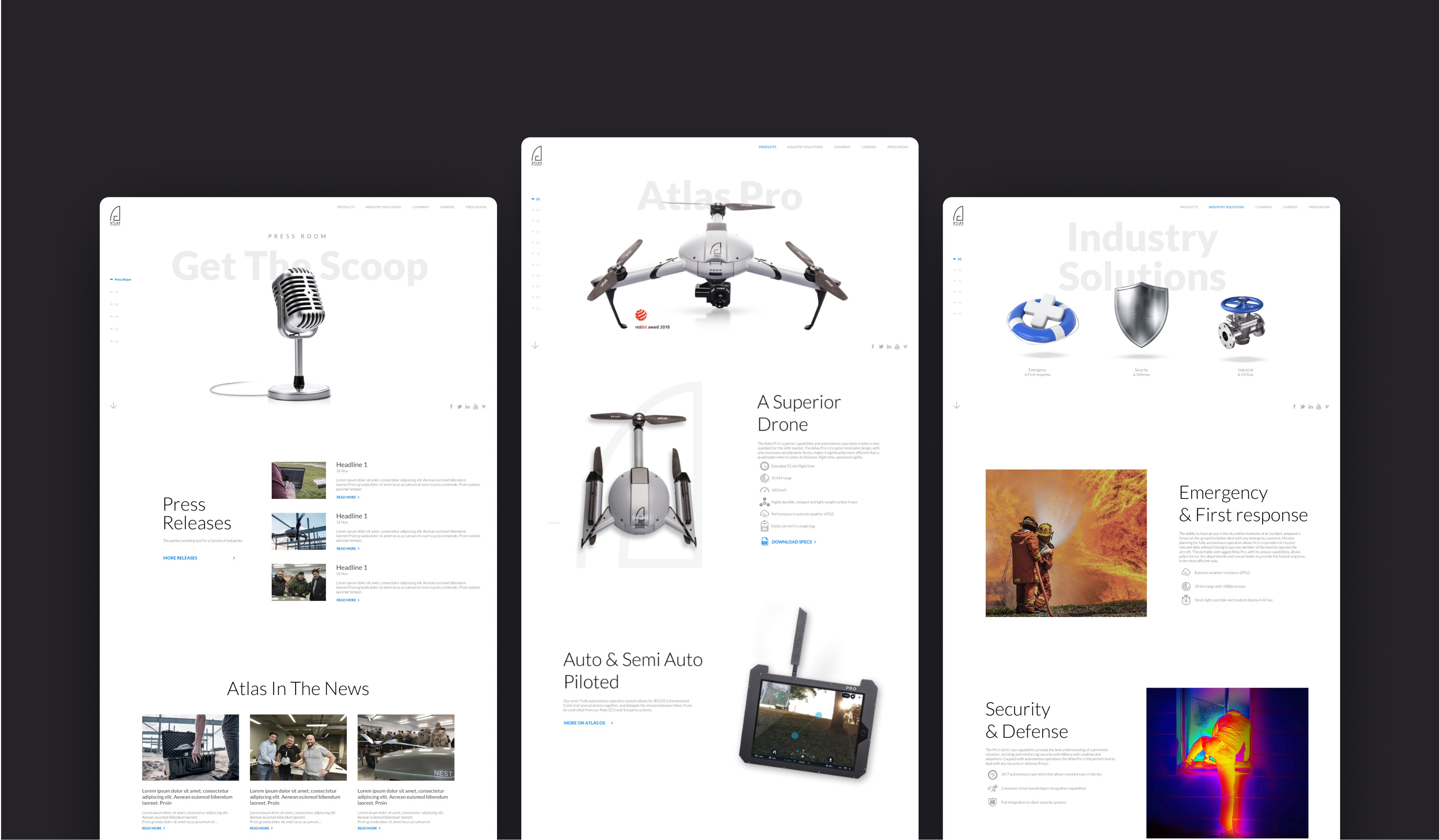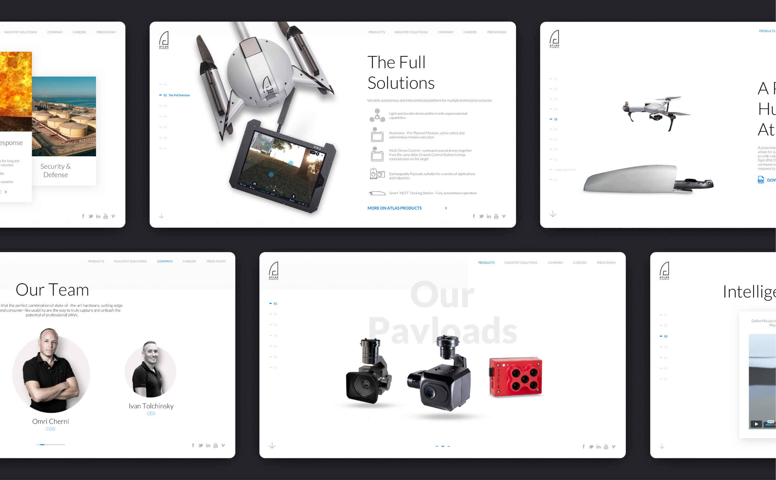 The final design is minimal clear and content driven. It features streamlined navigation strong visual hierarchy and high quality imagery that reinforces product credibility. The site balances technical depth with visual simplicity creating a digital experience that supports Atlas Dynamics' positioning as a serious reliable and forward thinking defense technology provider.