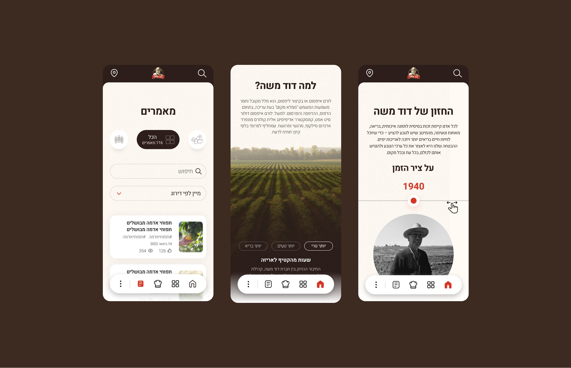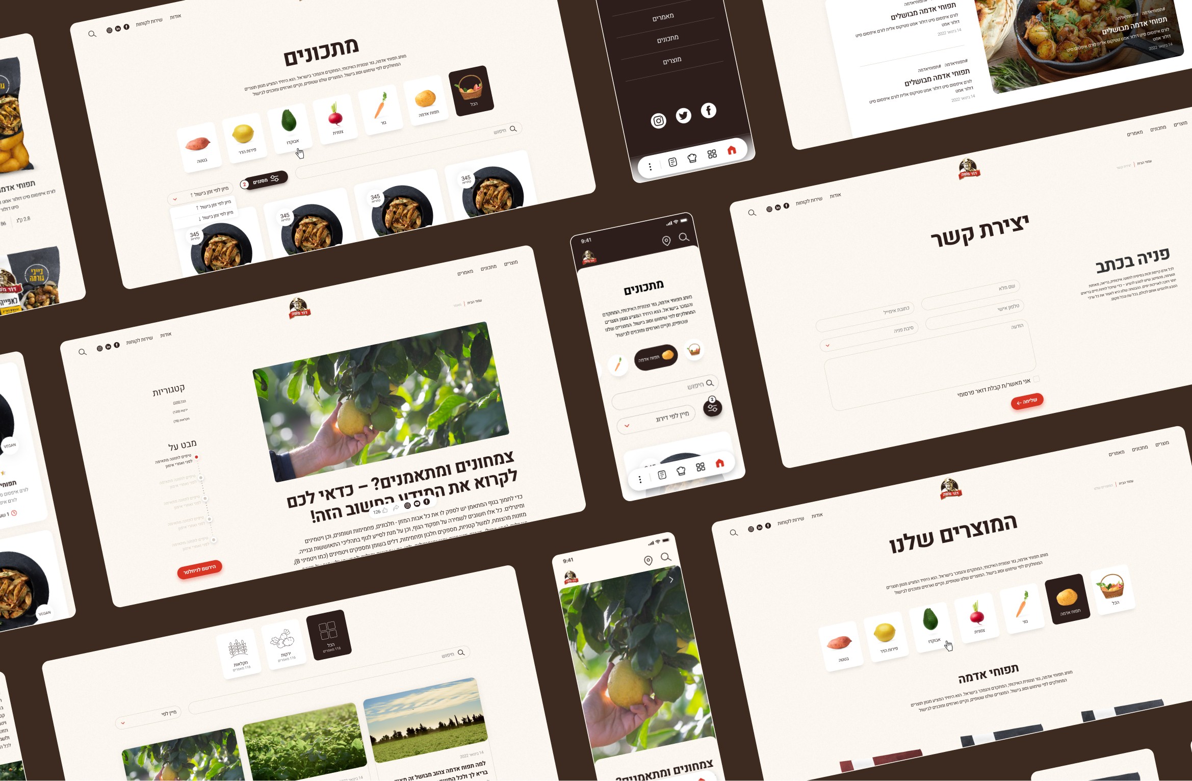 Dod Moshe is a premium agricultural brand known for its fresh high quality produce grown by expert farmers in ideal conditions. The company is a household name in Israel and a trusted symbol of authenticity in farm to table culture. Our task was to design a modern and visually rich website that communicates the brand’s core values while showcasing the freshness of its products and integrating branded recipe content. We explored the brand’s voice audience expectations and visual identity to deliver a design that feels both premium and accessible.